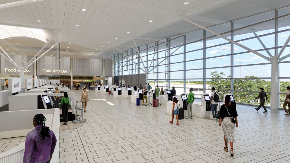 The departures area will open to banks of self-service check-in kiosks and bag drop facilities for all airlines, although check-in desks will remain for an “agent-led experience.”